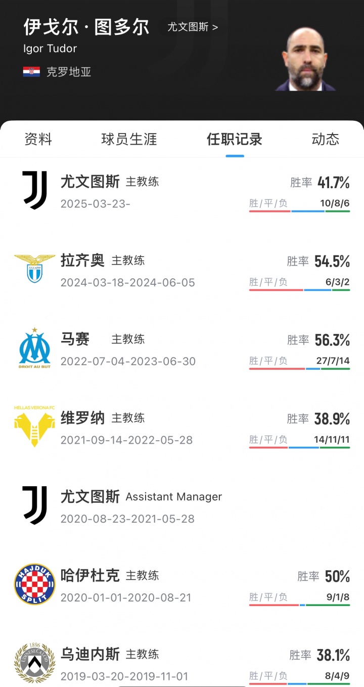 图多尔今年3月底担任尤文主帅,接任当时下课的莫塔,带队24场10胜8平6负。