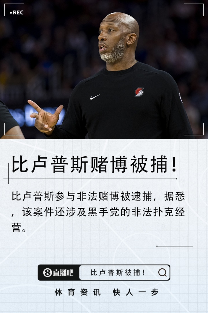 10月23日讯 据NBC率先报道,两名高级执法官员称,开拓者主教练比卢普斯因参与非法赌博被逮捕!